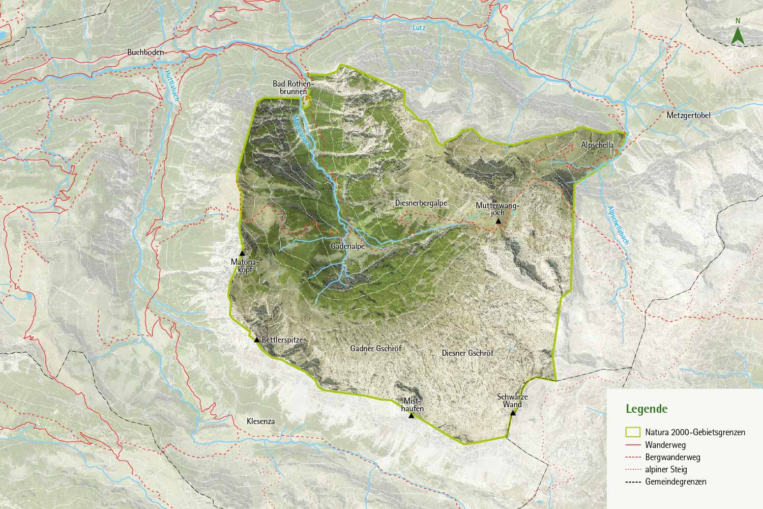 Im Europa- und Naturschutzgebiet Gadental umrahmt eine eindrückliche Bergkulisse mit kargen Felsen und schroffen Graten die traditionell genutzten Alpweiden und naturnahen Wälder. Vom Talboden bis zu den Berggipfeln ist dieses vielfältige Mosaik aus natürlichen und naturnahen Lebensräumen die Grundlage für eine artenreiche Pflanzen- und Tierwelt.